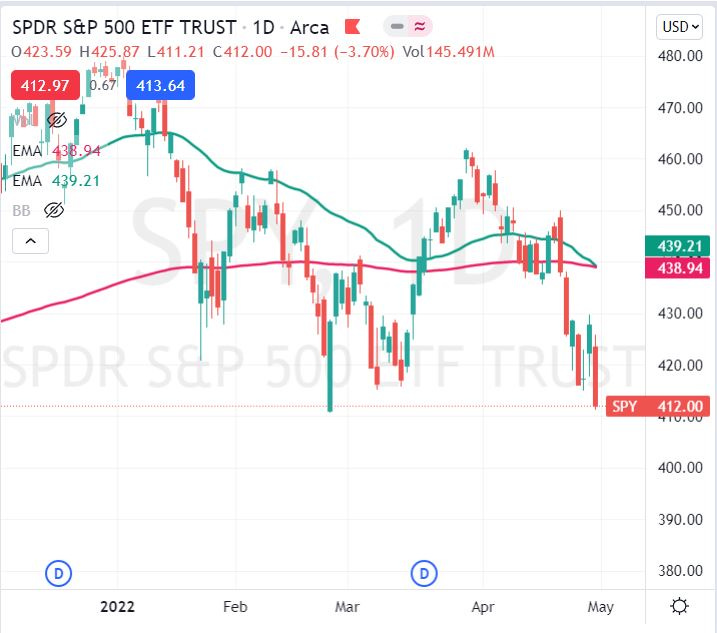 War, inflation, rate hikes, supply chain constraints, China lockdowns and the pandemic--this was an ugly week, no way around it. With Amazon, Microsoft, and Apple reporting earnings, all sectors closed lower. SPY continued to close below the 50 and 200 day, exponential moving averages and a "death-cross" seems imminent (a death-cross is when the 50 EMA green line moves below the 200 EMA red line). Consumer Discretionary, Real Estate, and Utilities were the worst hit. ARKK is now down over -60% for the year. GLD was down almost -2%, and SLV was down over -5%. Natural Gas and Oil were both up +10% and +1% respectively. While XHB (Homebuilders) declined, Home Depot and Lowes were able to eek out a small <1% gain each. Did anyone notice that Sherwin Williams and BABA climbed over +12% this week?